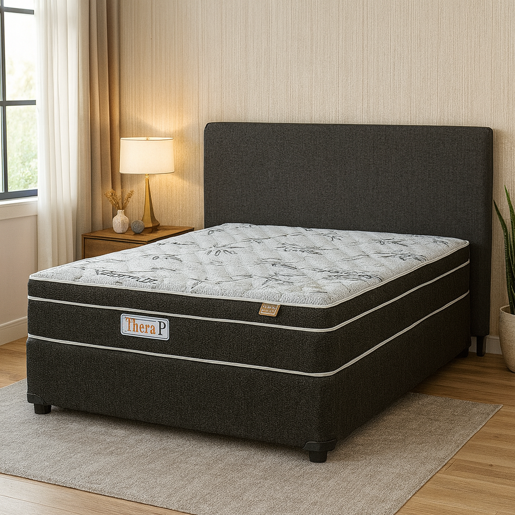 - Build: Grey upholstered base